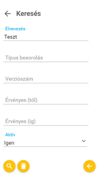 A táblázat fejlécében elhelyezett nagyító ikonra kattintva megjelenik a képernyő bal oldalán egy szűrőpanel, melyen a táblázat oszlopainak megfelelő adatkörökre lehet szabad szövegesen rögzítve vagy készletből kiválasztva beállítani a lehetséges értékeket.
