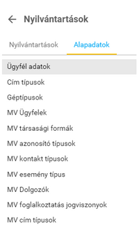 Az adatstruktúra definíciókkal kialakított nyilvántartásokat - megfelelő jogosultság birtokában - a felhasználói menü Nyilvántartások menüpontjáról lehet kezdeményezni. A menüpont kiválasztását követően egy oldalról beúszó választósáv nyílik meg, ahol két fülre rendezve jelennek meg a rendelkezésre álló nyilvántartások.