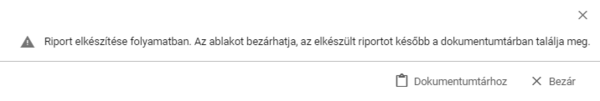 Az exportálás megkezdését követően a rendszer felugró ablakban ad lehetőséget arra, hogy a felhasználó vagy a Dokumentumtárba navigáljon letölteni a dokumentumot, vagy maradjon az Eseményekben.
