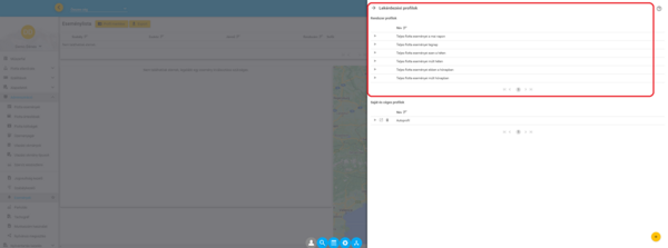 A funkció a Kiértékelés funkcióból már jól ismert Lekérdezési profilok nézetével nyílik meg, felül a Rendszer profilok, alattuk a Saját és céges profilok találhatóak.