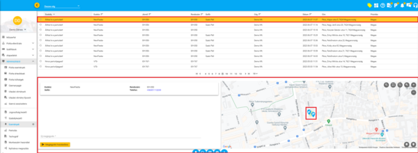 A listában egy-egy esemény sorára kattintva a térképes felület az esemény helyszínére közelít és megjeleníti a szabály megsértésekor megtett útvonalat, a beküldött koordinátákat az adott szabályra utaló ikonnal ellátott markerek jelzik.