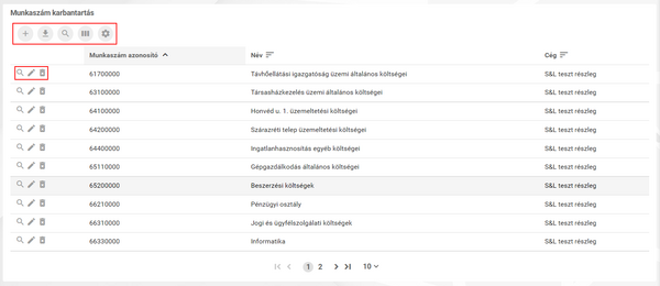 Munkaszámok karbantartása