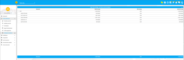 Miután a keresés paraméterei beállításra kerültek, az Elküldés gombbal indítható a lekérés. Az eredmény egy táblázatban jelenik meg, bal oldalon a keresés dimenziói, a jobb oldalon a költségek szerepelnek tételesen. A költségek nettó összege, ÁFA tartalma és bruttó összege tételenként feltüntetésére került, az összesítések a táblázat legalsó sorában találhatóak.