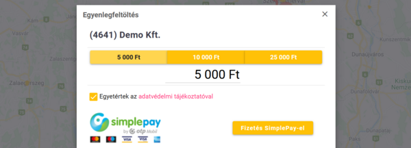 Az egyenleg feltöltése jelenleg a SimplePay online fizetési szolgáltatás használatával lehetséges. Az egyszeri feltöltés minimális összege 5000Ft, maximuma 100 000Ft. A gyorsgombok segítségével 5000Ft, 10 000Ft és 25 000Ft adható az egyenleghez, de igény szerint manuálisan kitöltve az értéket, a maximum és minimum határ között bármely, ezerrel osztható összeg feltölthető.