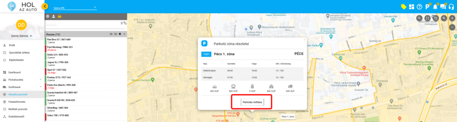 Flottakezelő rendszerünkben az online parkolás funkció használata jogosultsághoz kötött, kizárólag az erre vonatkozó szerződés megkötését követően érhető el ügyfeleink számára.