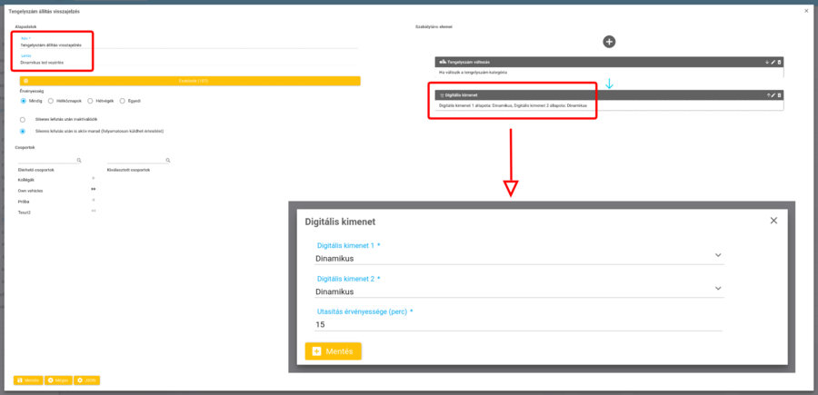 - A bírságok megelőzése érdekében LED visszajelzést is biztosítunk ügyfeleink számára, amellyel a sofőr ellenőrizni tudja a HUGO felé bejelentett kategóriát. Az automatizmusban a Tengelyszám változást követően a Digitális kimenet szabályelemben az egyes és kettes számú digitális kimenet értékét dinamikusra állítva kell rögzíteni.