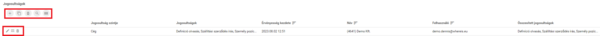 A lista első oszlopában elhelyezett és az utolsó oszlopban hiperlink-ként megjelenő vezérlők az adott sorral kapcsolatos, míg a lista alatt elhelyezett vezérlők általános - az alábbiakban részletezett - funkciókat indítják
