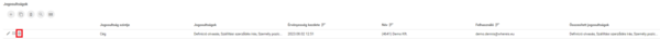 A szemetes piktogrammal jelölt ikonra kattintva kezdeményezhetjük az adott sornak megfelelő jogosultság törlését. A kattintást követően a rendszer egy dialog ablakot jelenít meg, melyen megerősíthetjük, vagy elutasíthatjuk a törlési szándékot. A törlés csak a megerősítést követően történik meg.