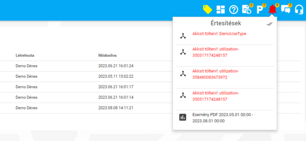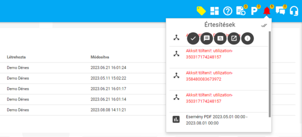 A rendszer a kiküldött értesítések számát a jobb felső sarokban elhelyezett csengettyűn mutatja.