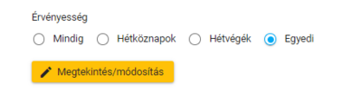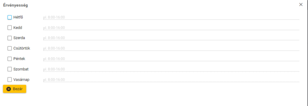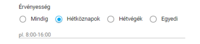 A Hétköznapok, Hétvége és Egyéni opciót választva naponként akár több érvényességi időszakot is beállíthatunk.