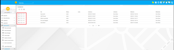 A csengettyűn megjelenő szám nem feltétlenül a szabályszegési értesítések számát jelzi, mivel a rendszer egyéb moduljai által generált értesítések is ide futnak be. A szabálysértésekkel kapcsolatos értesítések ebben a menüben kezelhetők. Ha a szabály létrehozásakor a „Sikeres lefutás után inaktíválódik” kitétel került kiválasztásra, a szabály a Lezárás gomb ( ✔️ ) megnyomásáig nem riaszt, azt követően viszont újra életbe lép, és ha szabályszegést észlel, újra értesítést küld. A „Sikeres lefutás után is aktív marad” beállítás eredményeképp értelemszerűen folyamatosan küldi az értesítéseket a rendszer, amig a felhasználó nem inaktiválja a szabályt.