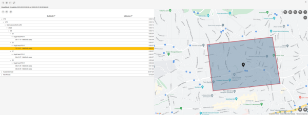 A táblázatban a különböző eszközökre, azokon belül a napokra, illetve a POI-ra kattintva a táblázat mellett található térképen jelölve láthatod a megállás helyét is.