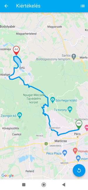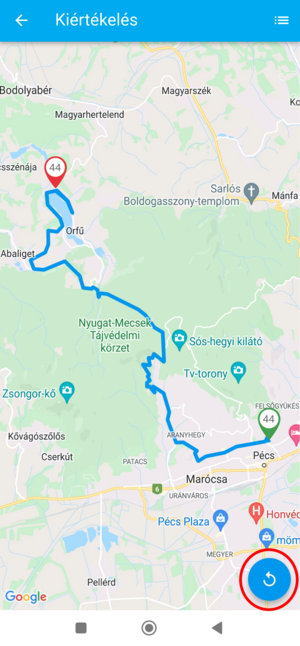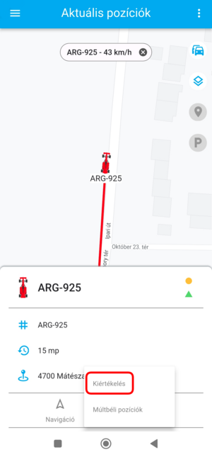 A korábbi útvonalak vizsgálatának másik eszköze a Kiértékelés funkció. Ezt a funkciót kifejezetten az útvonal információk áttekintésére használhatod, mint például indulási és érkezési cím, átlag és maximális sebesség, megtett távolság, időtartam.