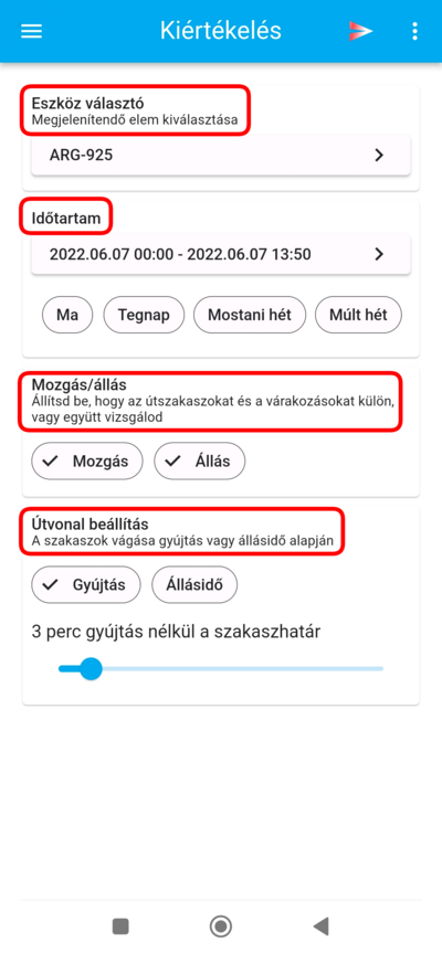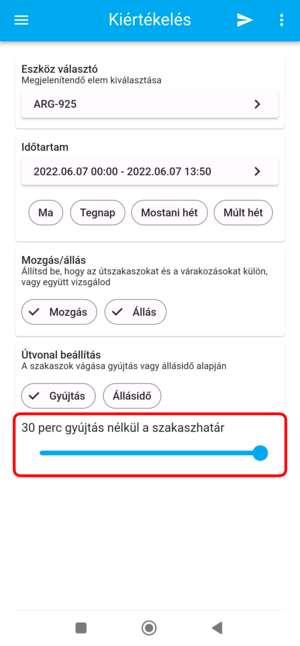 - döntsd el, hogy a mozgásos szakaszokat, az állásidőket, vagy mindkettőt szeretnéd látni az eredményben