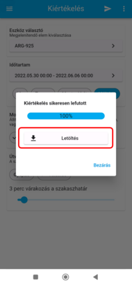 A kiértékelés elkészültével letöltheted az exportot, és a mobilkészülékeden rendelkezésedre álló lehetőségek közül választva meg is nyithatod azt.